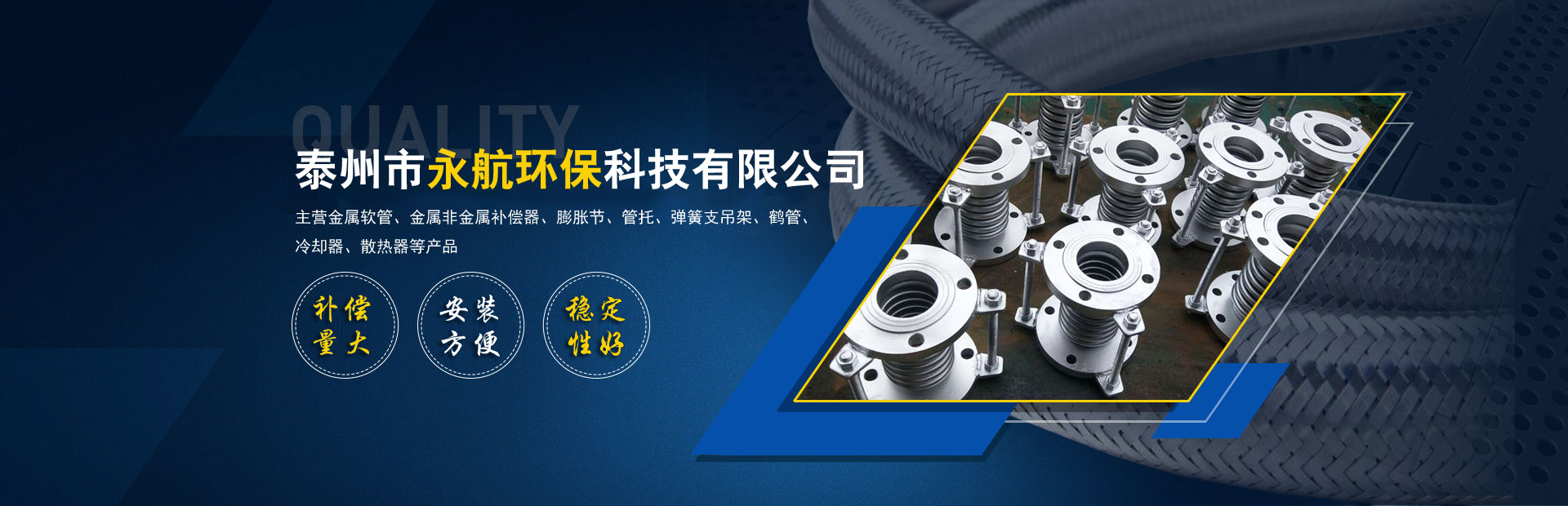 公司專注從事設計制造金屬膨脹節(jié)、不銹鋼金屬軟管、波紋管補償器、不銹鋼軟管、不銹鋼波形波紋補償器、矩形補償器、非金屬補償器、冷卻器、換熱器、風門、法蘭、管件、墊片、橡膠補償接管、減振器、減振墊和各類高壓軟管產(chǎn)品。